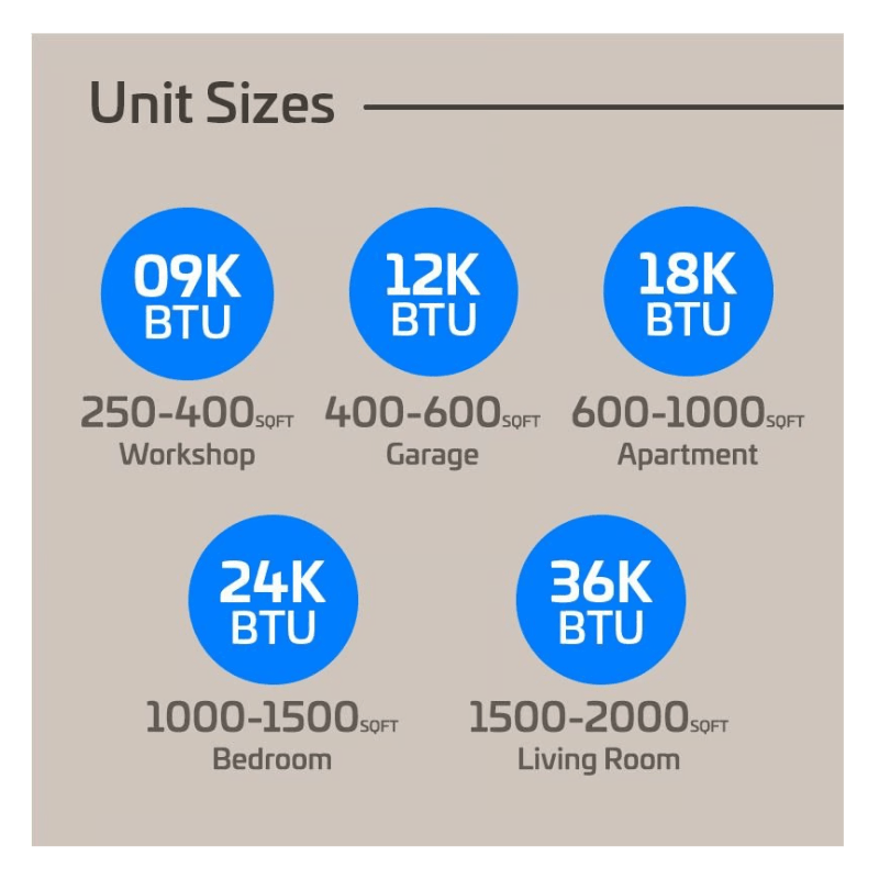 • Medium-sized Rooms (600–1000 sq ft): Perfect for bedrooms, home offices, living rooms, or dens, delivering energy-efficient, quiet cooling and heating.