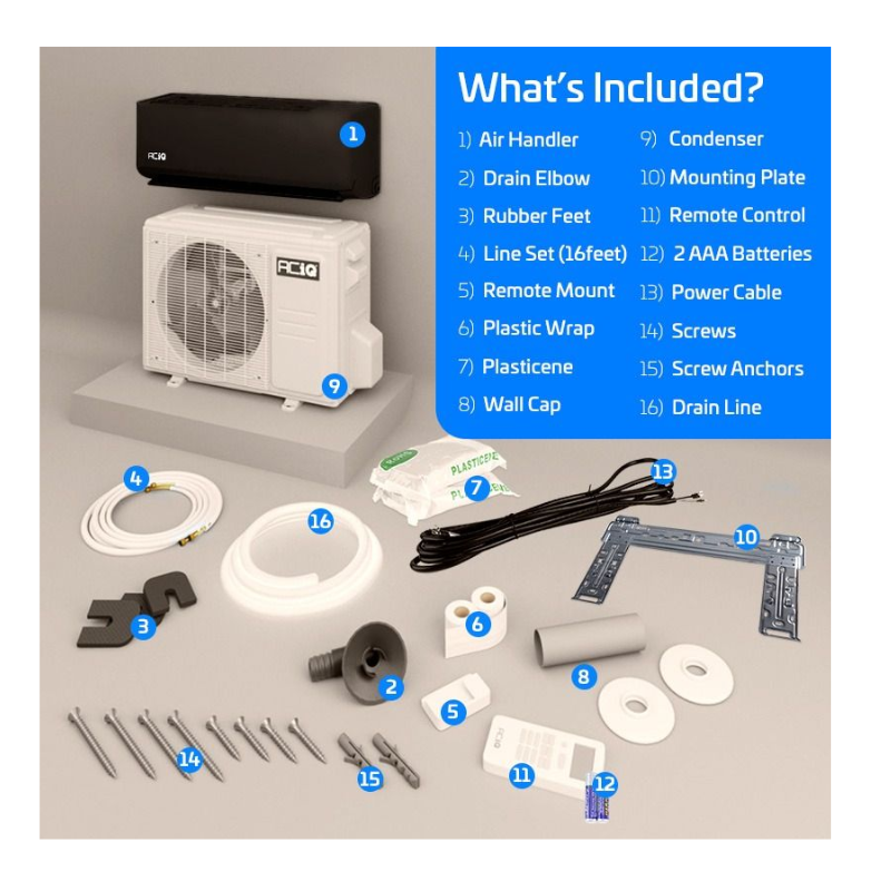 Everything you need is included with your ACiQ Essentials Mini Split Package.