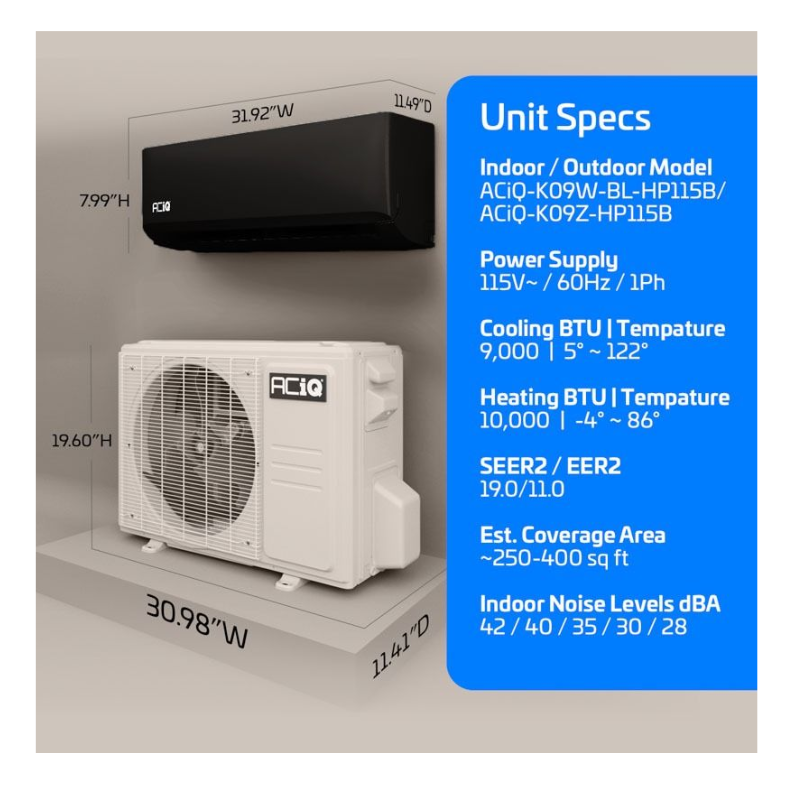 Eliminate Hot Spots with the ACiQ 9,000 BTU 19 SEER2 Single Zone Mini Split System