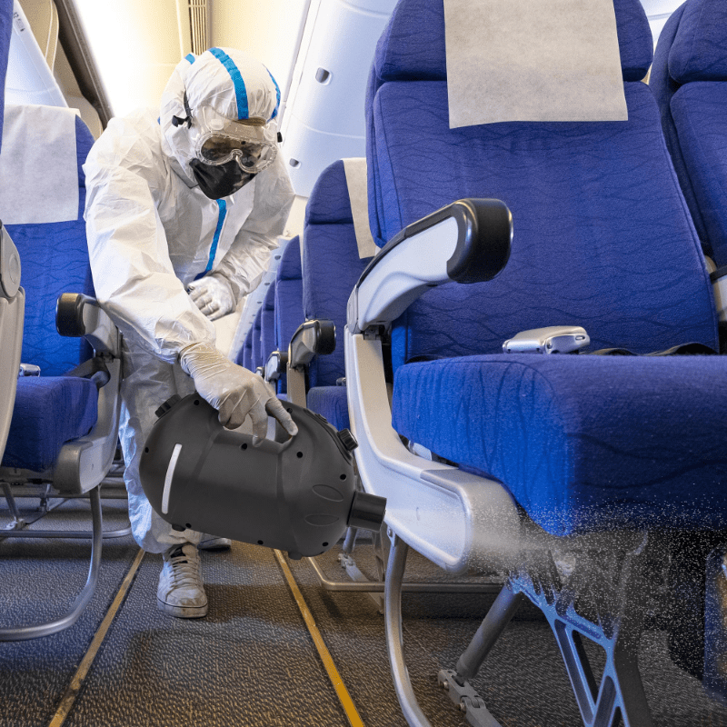 • Ideally used for large area spraying operations, such as disinfection of hospitals, schools, restaurants, theaters, care facilities, pet boarding, greenhouse, cars, trains, and other public places.