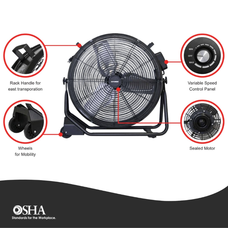 XPOWER 1/2 HP, 5800 CFM, 1.8 Amps, Variable Speed 24" Drum Fan