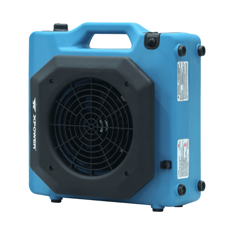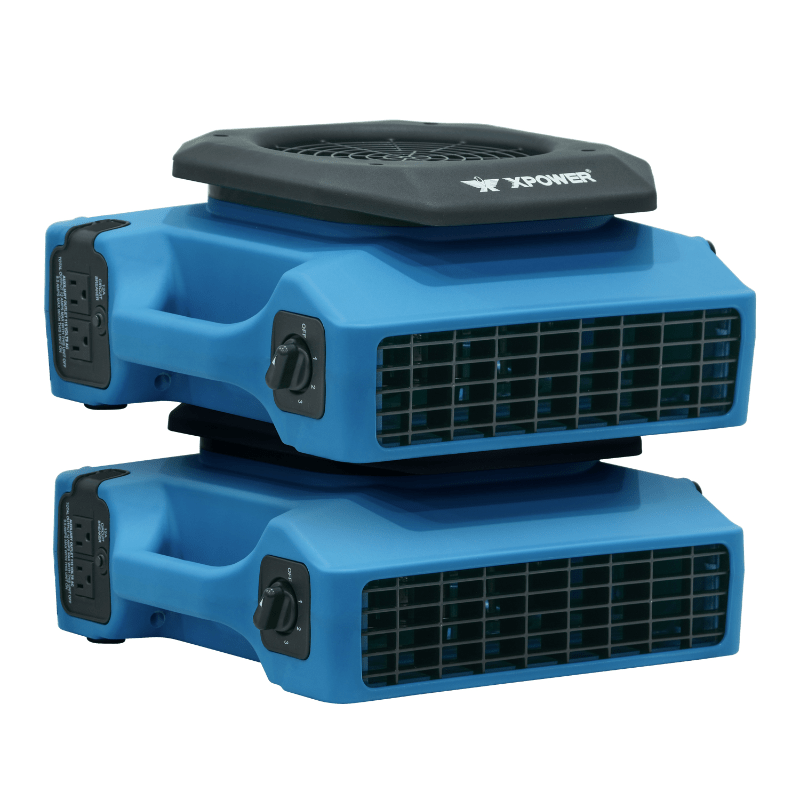 Stackable up to 6 units high, this blower fan’s slim profile is the most compact in its class, with a deep nested stackable design for stable transportation. The blower fan can be positioned flat, horizontally, or vertically for drying and storage. A lightweight design and ergonomically positioned molded handle makes the XPOWER Low Profile series of air movers the new industry favorite.