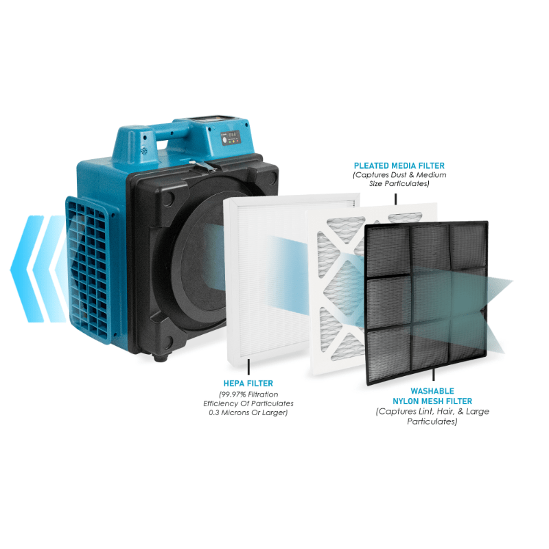• Ideal for handling indoor air quality needs for mold and sewage remediation, water and fire damage restoration, and dust and odor control