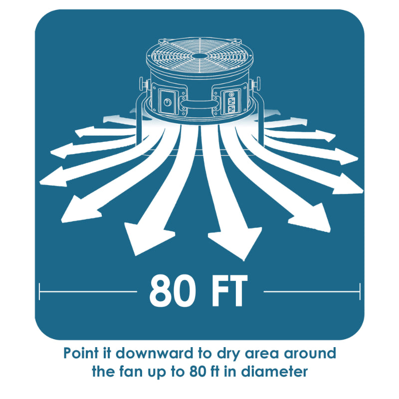 • Variable speed control to efficiently dry carpets, floors and walls, and for ventilation and climate control